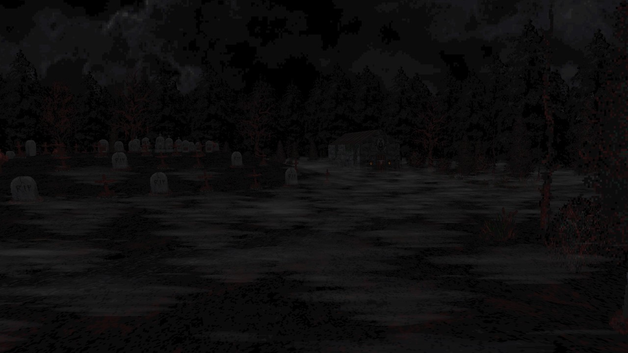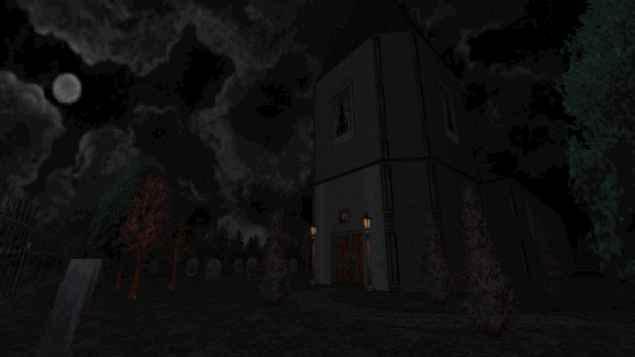There are six varied levels that make up the campaign, all centred around a vast wetland region with winding roads passing through deep forests. Each one then remains focused upon specific locations without meandering too far from those choice concepts. Places such as Pascow’s Grocery or Willard Public Library are then interspersed as interior points of interest to break up all the outdoor travel. While some levels might operate well enough as self contained vignettes, they function better when considered as a seamless whole where an ending of one leads directly into the start of the next, structured not too unlike a campaign for HALF LIFE. In fact, I was often reminded of Manke’s THEY HUNGER trilogy due to several reasons, from sharing pulpy horror and occult themes involving the undead, to their very introductory segments having a heavy case of deja vu. Both would have you arriving by car when forced to halt the road trip somewhere near to a graveyard. From there a path leads up to an isolated church holding a necessary item to proceed onwards. Their journeys then involve trekking through natural landscapes and rural locales to reach some form of civilised territory, only to find the worst case scenario has already occurred. Whether by coincidence or as a source of inspiration, despite these similarities feeling a little on the nose as WILLARD offered a familiar taste, I much preferred the shorter run time here. Bloodskar chopped away any excess fat, leaving behind just enough to chew on for more effective pacing between moments that mattered most, while not undermining the macabre and lonesome dread it carefully builds up until then.