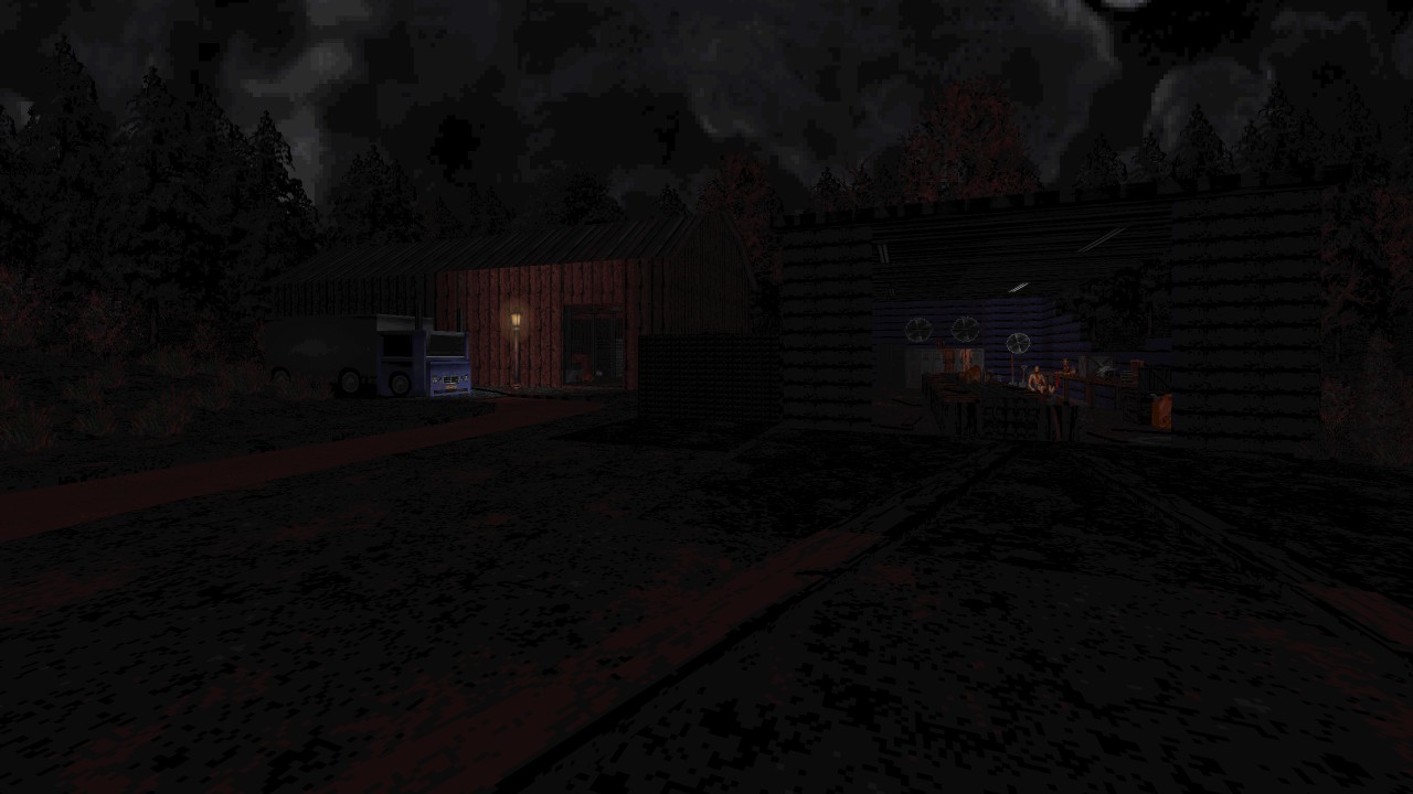 Bloodskar takes full advantage of stock assets and NBLOOD’s extended features to pull off a great visual identity, targeting realism for structural aesthetics and grounded blueprints. Meanwhile landscaping appears naturally varied from terrain inclines, steep rock walls and small mounds, to swampy ponds and a river waterfall. These sights in combination with ambient sounds such as night creatures, a droning wind and drips echoing through road tunnels ties things together that drew me into this world. There was always a weight pressing down as if something could be watching your every move among the trees and shadows. Despite how eerie it may seem, not far off in the distance apartment buildings are perched just out of reach, a mild comfort knowing that civilisation might be close at hand. Every direction you turn there’s a suitable attention to detail to occupy those spaces, applying lots of decorative clutter to appear loud and lived in, as if people once went about their day to day business yet were interrupted at some point. Perusing these sights was an enjoyable enough task alone simply seeing how BLOOD’s assets had been utilised to fulfil certain looks and fixtures, while the odd custom texture is added to cover gaps such as vehicles. Interiors are densely packed too with many expected furnishings almost to a fault, at times interfering with movement during gameplay, slipping and sliding off the details as I’m trying to keep on my toes during a fight. I’d even see enemies themselves getting caught up and bouncing rapidly in some of the tighter sprite constructions. This doesn’t become a major deal breaker for me as WILLARD still remained slower paced, the majority of fighting taking place around open spaces primarily against melee foes, but was still a notable blemish in places like the grocer or cottage when having pieces of decoration snag me and then taking punishment for that.